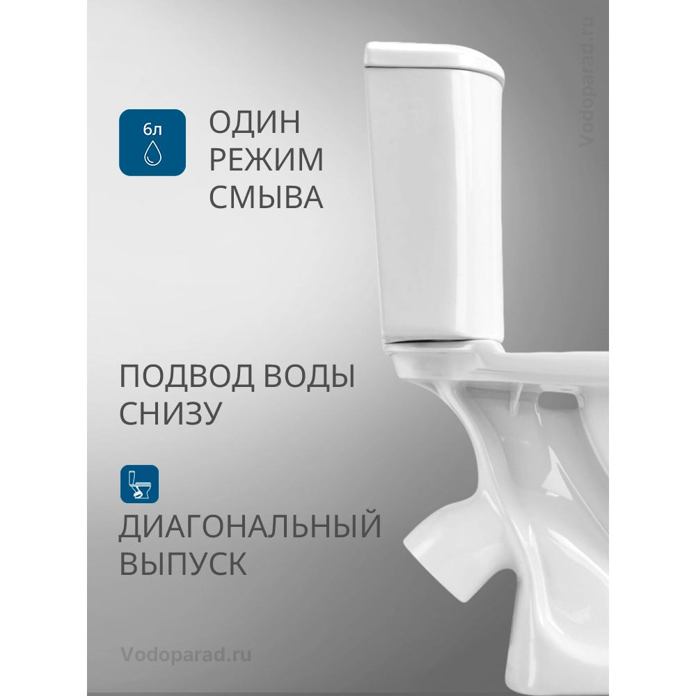 Унитаз-компакт Santek Бореаль с диагональным выпуском, эконом- 1 реж., изготовлен из прочного полипропилена, под артикулом 1WH301704. Этот унитаз прекрасно впишется в классический интерьер благодаря своим округлым формам и мягким линиям.
