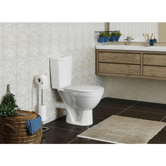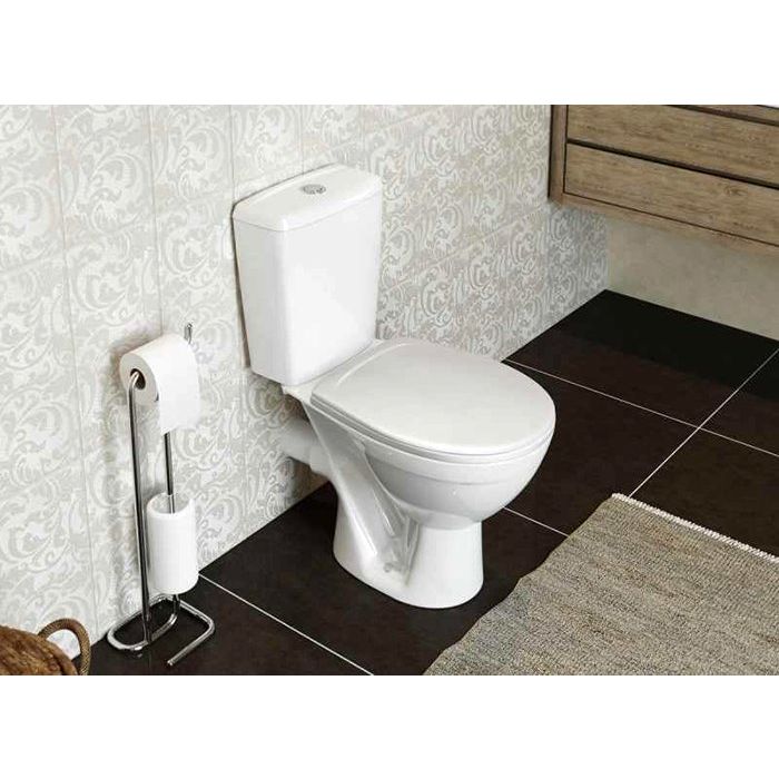 Унитаз-компакт Rosa Соло Люкс — идеальное сочетание элегантного дизайна и современных технологий. Этой модели отдают предпочтение за её надежность и функциональность. Благодаря горизонтальному выпуску унитаз легко интегрируется в любую современную систему канализации. Механизм плавного опускания крышки обеспечивает максимальный комфорт и предотвращает резкие удары.