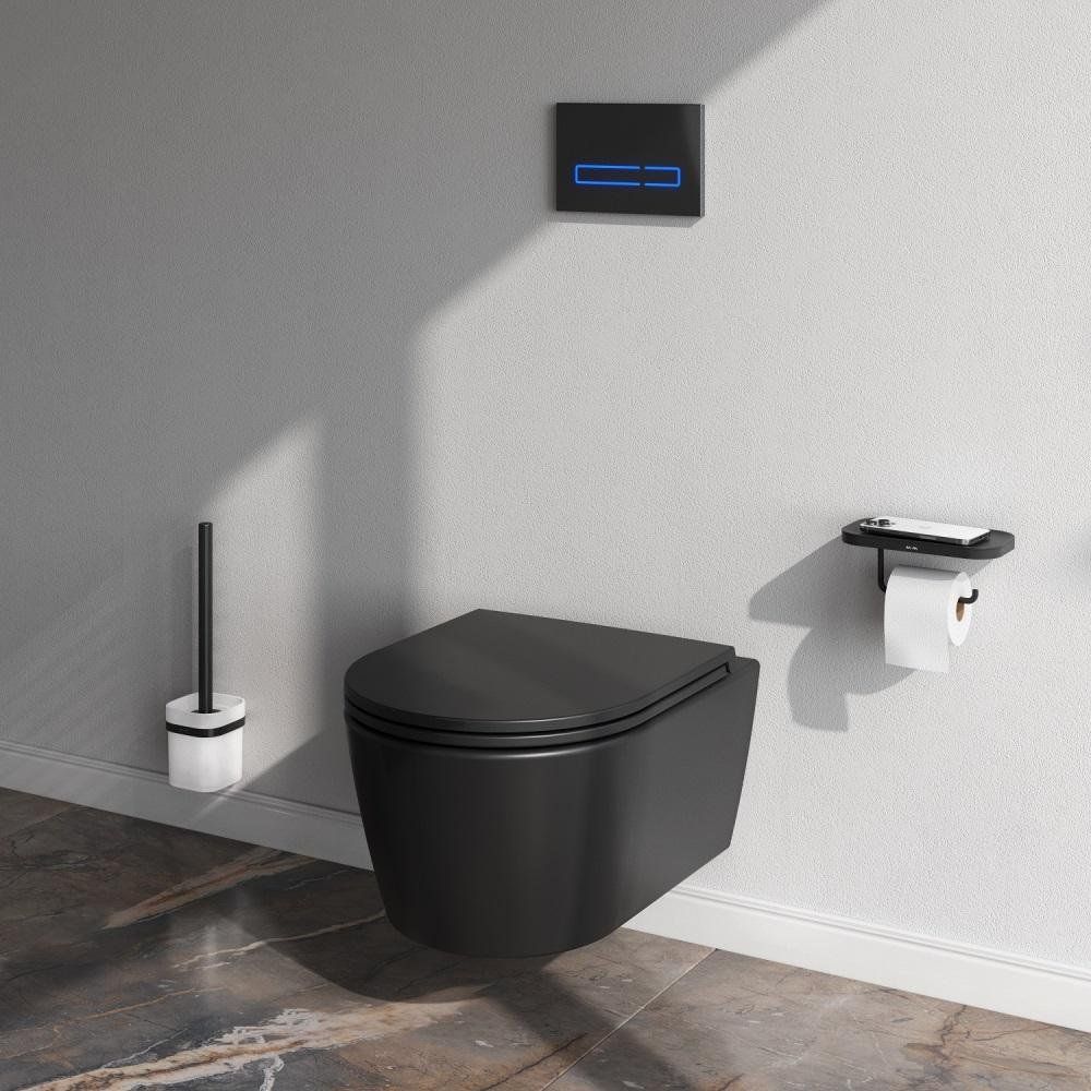 - Ультрасовременный дизайн и матовая черная поверхность создают стильный акцент в ванной комнате.