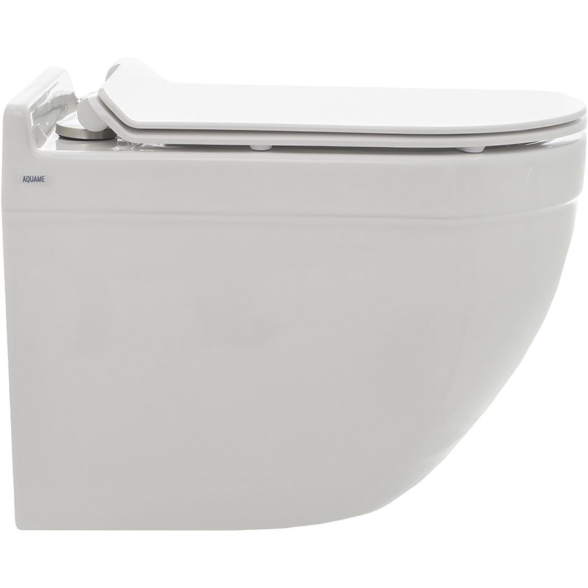 Унитаз подвесной AQUAme AQM2006 оснащен горизонтальным выпуском, позволяющим его установку в стену. Фаянсовая конструкция и воронкообразная форма чаши эффективно предотвращают образование брызг. Специальное покрытие унитаза препятствует образованию загрязнений, а съемная крышка-сиденье значительно облегчает уход за изделием.