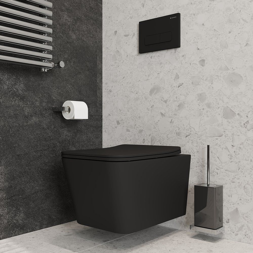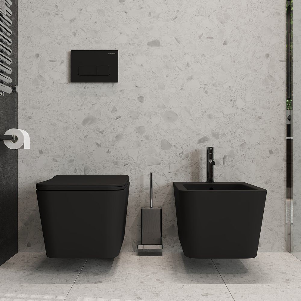 Унитаз подвесной Aqueduto Macio MAC0140 — это стильное и функциональное решение для вашей ванной комнаты. Современный черный матовый цвет и отсутствие ободка придают ему элегантный внешний вид, подходящий для любых интерьеров. Технология микролифт обеспечивает плавное опускание крышки, добавляя комфорта и продлевая срок службы изделия. В производстве использованы высококачественные материалы, такие как фаянс и дюропласт, что гарантирует прочность и долговечность. Подвесная конструкция значительно упрощает уборку помещения и позволяет максимально рационально использовать пространство.