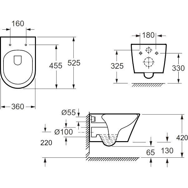 Этот подвесной унитаз имеет горизонтальный выпуск в стену и оснащен прогрессивной системой двойного слива: 3 и 4.5 литра, что позволяет экономить воду. Его удобная воронкообразная форма предотвращает образование брызг. Сиденье поставляется в комплекте, снабжено дюропластовой крышкой, которая не желтеет и не подвергается царапинам. Унитаз выполнен из высококачественного фаянса, и обладает гарантией на керамику 25 лет.