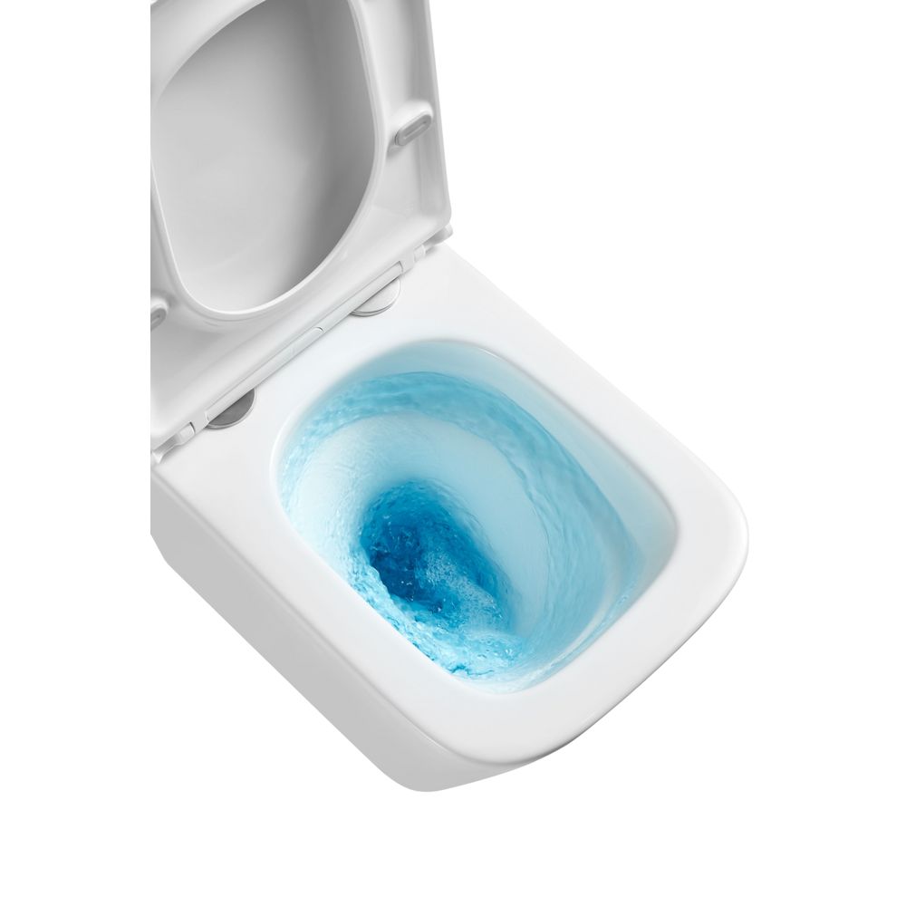 Унитаз выполнен из высококачественного фарфора и предназначен для подвесного монтажа. Горизонтальный выпуск позволяет установить его в стену, освобождая пространство на полу. Конструкция без ободка облегчает уход, позволяет легко поддерживать чистоту и минимизирует риск распространения бактерий. Крышка сиденья изготовлена из дюропласта, который не желтеет, не царапается и устойчив к химическим средствам. Интеллектуальный механизм плавного опускания крышки-сиденья добавляет комфорта пользователям. Модель поддерживает функции экономии воды.