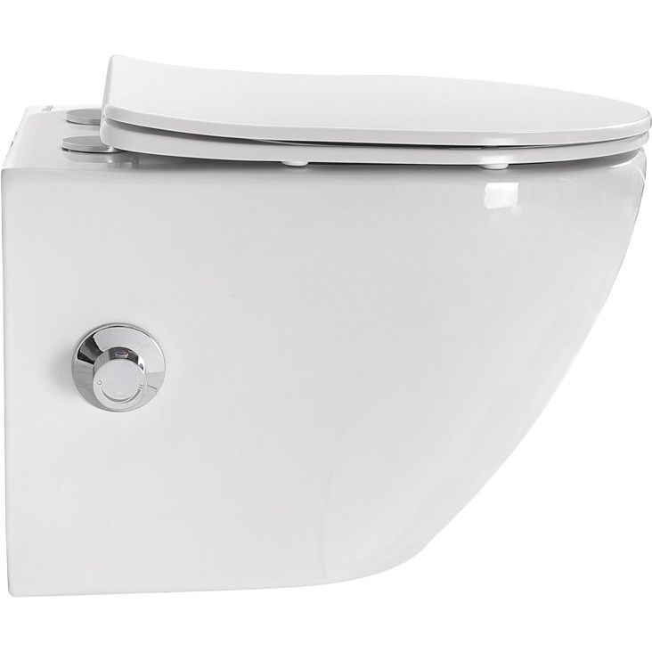 Этот подвесной унитаз имеет горизонтальный выпуск, который позволяет эффективно организовать пространство в ванной комнате. Механизм плавного опускания крышки защищает от шумного захлопывания, а съемное сиденье облегчает уход. Дюропластовая крышка устойчива к механическим повреждениям и воздействию бытовой химии. Воронкообразная форма чаши унитаза предотвращает образование брызг, обеспечивая дополнительный комфорт. Унитаз с функцией биде и регулировкой температуры воды включает в себя смеситель, обеспечивая полный контроль над процессом использования.