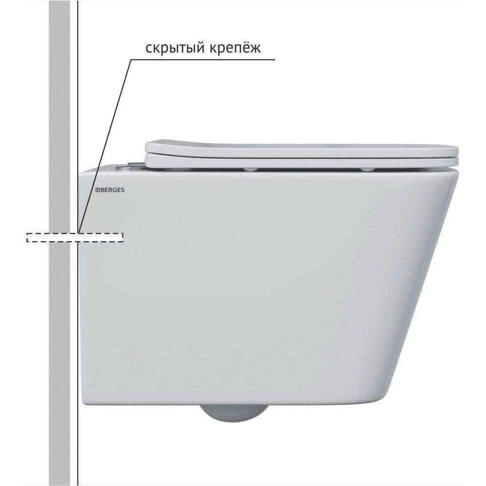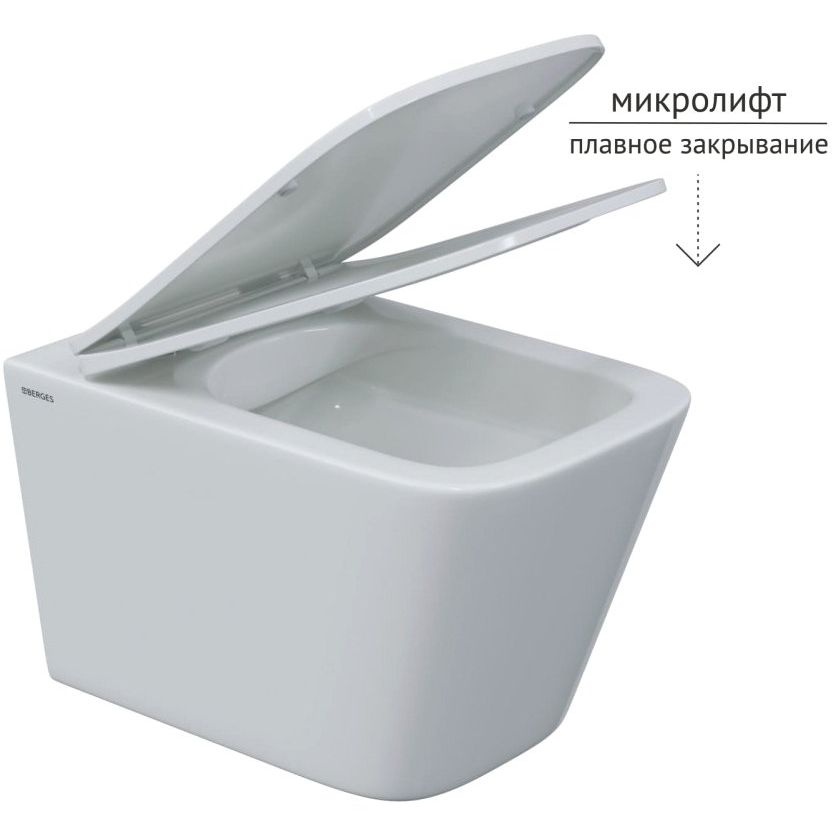 Унитаз Berges Floe S 082134 имеет горизонтальный выпуск, что позволяет удобно подключать его к системе канализации. Он выполнен из прочного фарфора, гарантируя высокую надежность и устойчивость к повреждениям. К крышке из дюропласта прилагается специальный механизм микролифта, благодаря которому она не хлопает и медленно опускается. Комплектация включает всё необходимое для установки, включая сиденье.