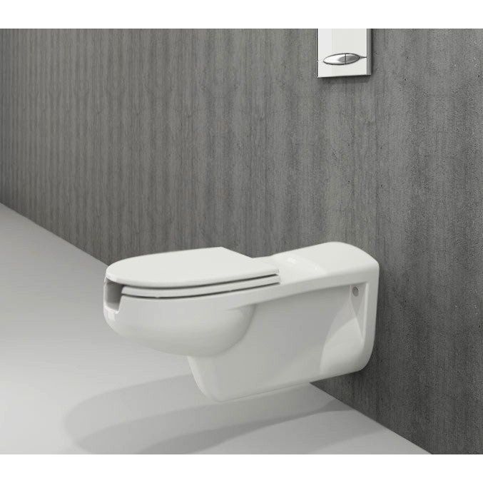 Этот унитаз имеет горизонтальный выпуск, специально предназначенный для установки в стену, что создаёт ощущение свободного пространства и лёгкости. В комплект входит утонченное сиденье, изготовленное из дюропласта, который не желтеет и надолго сохраняет безупречный внешний вид. Кроме того, к особенностям модели можно отнести отсутствие функции антивсплеска, что будет удобно для тех, кто предпочитает традиционный вариант эксплуатации.