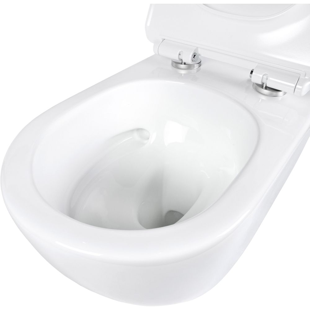 Унитаз BOND Oval F12-10 имеет горизонтальный выпуск, подходит для установки в стену, и обладает формой воронки, которая предотвращает брызги. Изготовленный из фарфора, он покрыт слоем, препятствующим загрязнению. Унитаз комплектуется сиденьем из дюропласта, устойчивого к бытовой химии и не подверженного изменениям цвета и царапинам. Гарантия на изделие — 25 лет. Страна производства — Италия.