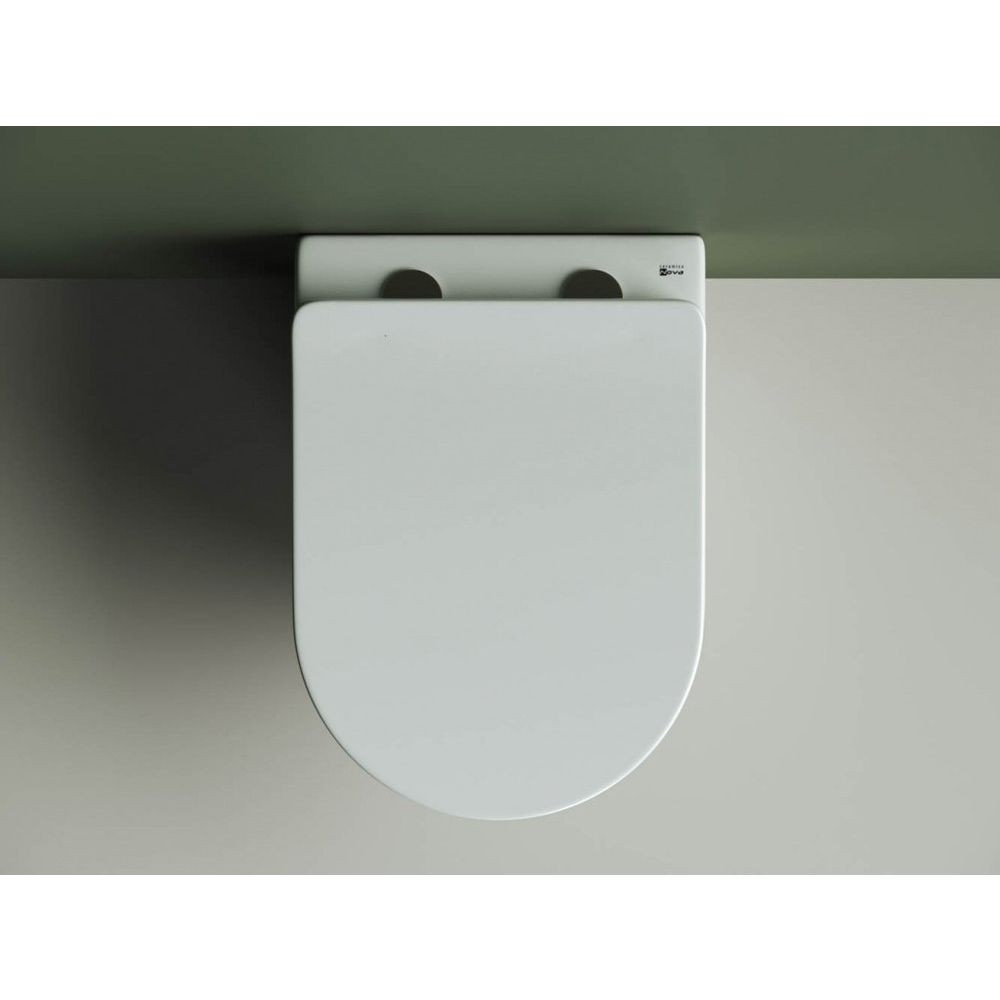 Унитаз подвесной оснащен горизонтальным выпуском для удобной установки в стену. Безободковая конструкция облегчает процесс чистки и поддержание гигиены. Фаянсовая форма воронки предотвращает появление брызг. В комплект входит крышка-сиденье из дюропласта, устойчивого к царапинам и воздействию бытовой химии. Керамика имеет гарантию 25 лет, а сиденье — 2 года. Производится в Италии, что подтверждает высокие стандарты качества.