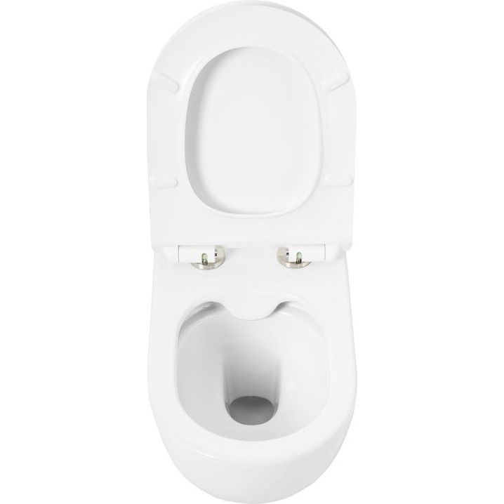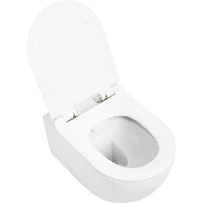 - Механизм плавного опускания крышки предотвращает шум и увеличивает долговечность изделия.