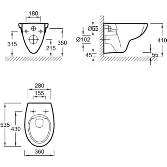 - Чаша подвесного унитаза без смывного обода (Rimless),