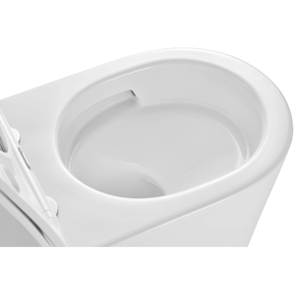 - Конструкция безободковой чаши исключает выплескивание воды.