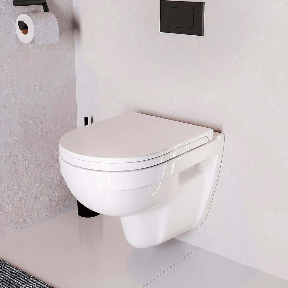 Подвесной унитаз из коллекции Best сопровождает стилистику пространства ванной комнаты ясными геометрическими формами и точностью.