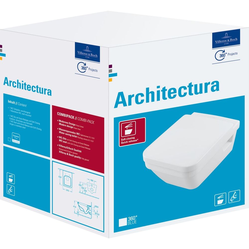 Унитаз подвесной Villeroy & Boch Architectura 5685HR01 изготовлен из фаянса, что гарантирует долговечность и простоту в уходе. Благодаря горизонтальному выпуску он легко монтируется в стену, освобождая место на полу. Съемная крышка-сиденье обеспечивает максимальное удобство при чистке. В комплект входит сиденье с дюропластовой крышкой, устойчивая к бытовой химии, с гарантией на керамику — 4 года и сиденье — 2 года.