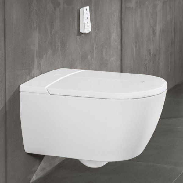 Унитаз Villeroy & Boch Viclean V0E100R1 оснащен горшечным выпуском конструкции с уникальной формой чаши, что исключает разбрызгивание. Его безободковая форма и покрытие, предотвращающее загрязнения, делают очистку быстрой и простой. Крышка-сиденье из дюропласта не подвержена пожелтению и стойка к царапинам, что гарантирует ей долговечность и эстетичность. Интегрированная функция биде со множеством настроек позволяет персонализировать процесс и повысить комфорт. Пульт дистанционного управления и встроенный термостат обеспечивают дополнительное удобство использования.