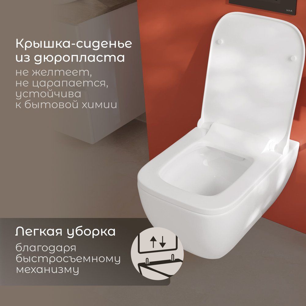 Унитаз подвесной VitrA Shift 7742B003-0075 — это сочетание утонченного дизайна и передовых технологий, который идеально подходит для современных ванных комнат. Спроектированный с горизонтальным выпуском, он обеспечивает простоту установки и гармоничное встраивание в интерьер. Безободковая конструкция унитаза облегчает процесс уборки, позволяя поддерживать высокий уровень гигиены. Тонкая крышка оснащена механизмом плавного опускания, что делает ее использование комфортным, а легкосъемное сиденье упрощает уход.