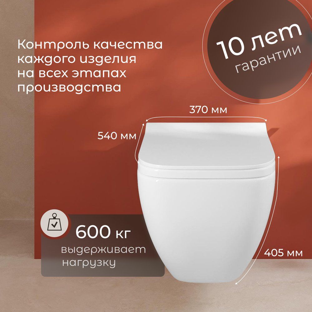 Унитаз выполнен из высококачественного 100% фарфора, который обеспечивает долговечность изделия. Крышка-сиденье изготовлена из дюропласта, что гарантирует устойчивость к царапинам и бытовой химии, а также предотвращает пожелтение. Оснащен воронкообразной формой чаши, что эффективно предотвращает образование брызг. В комплект входит сиденье, гарантия на керамику составляет 10 лет, а на сиденье - 2 года. Страна производитель — Турция.