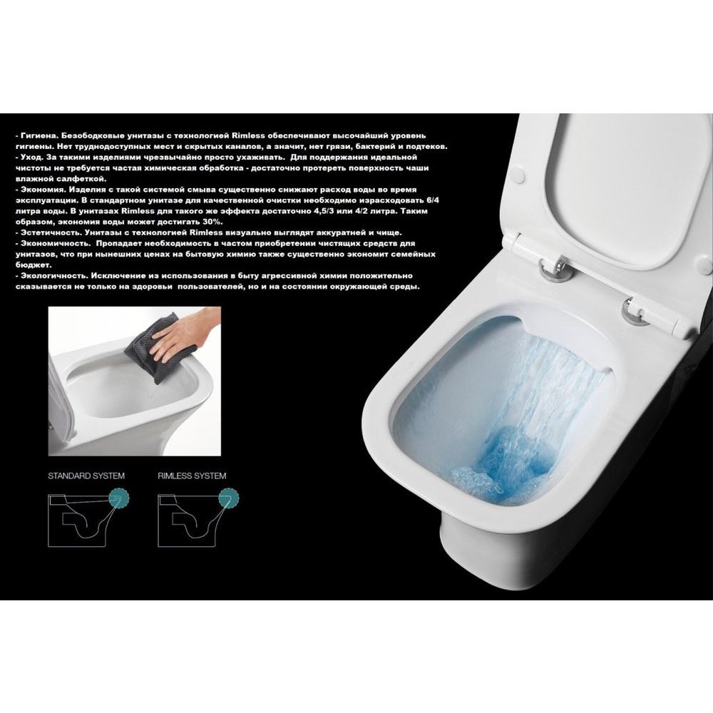 - Конструкция без ободка для легкой уборки и чистоты