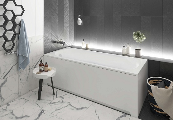 - Прямоугольная форма и универсальная ориентация позволяют легко вписать ванну в любую планировку ванной комнаты.