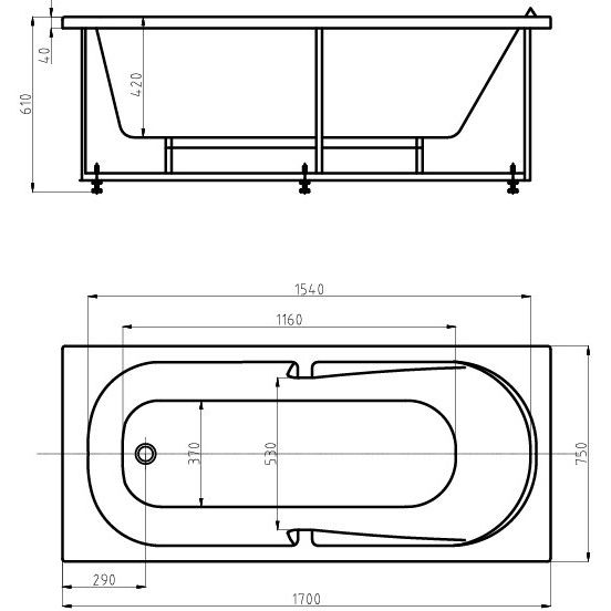 - Комплектация со сливом-переливом и фронтальным экраном упрощает установку.
