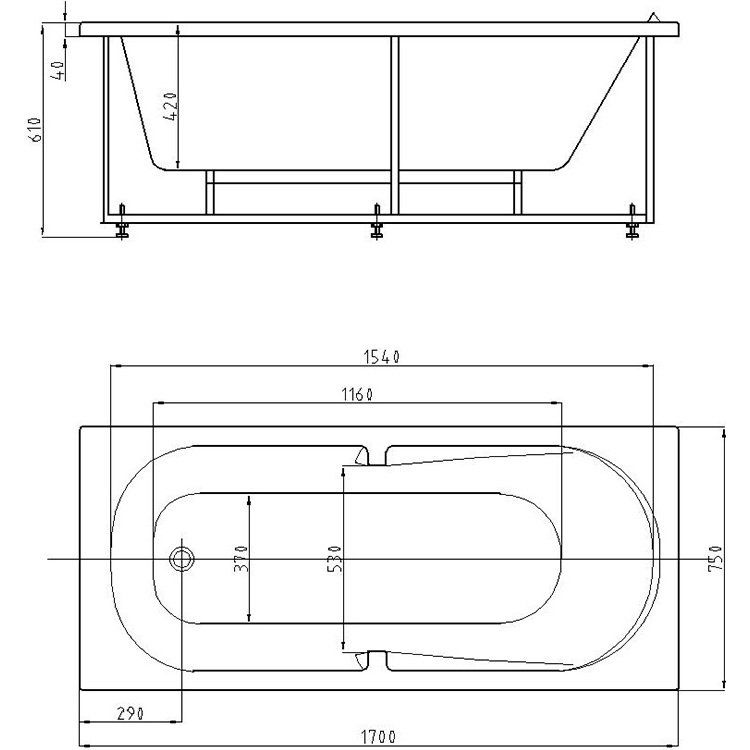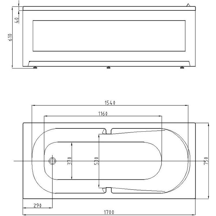 Акриловая ванна размером 170x75 см отличается вместительным объемом — 240 литров, и предлагает дополнительную возможность установки ручек для вашего удобства. Встроенный слив-перелив обеспечивает комфортную эксплуатацию, слив диаметром 5.2 см расположен справа. Если необходимо, можно приобрести подголовник отдельно, а экран нужно будет докупить, поскольку он не входит в комплект.