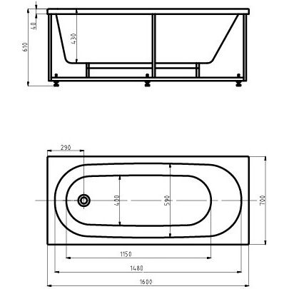 Ванна имеет размеры 160x70 см и вмещает до 195 литров воды, что достаточно для комфортного принятия ванны. Изделие поставляется с каркасом и фронтальным экраном, а также комплектом для слива-перелива с диаметром 5 см. Дополнительно возможна установка ручек и приобретение подголовника для увеличения комфорта.