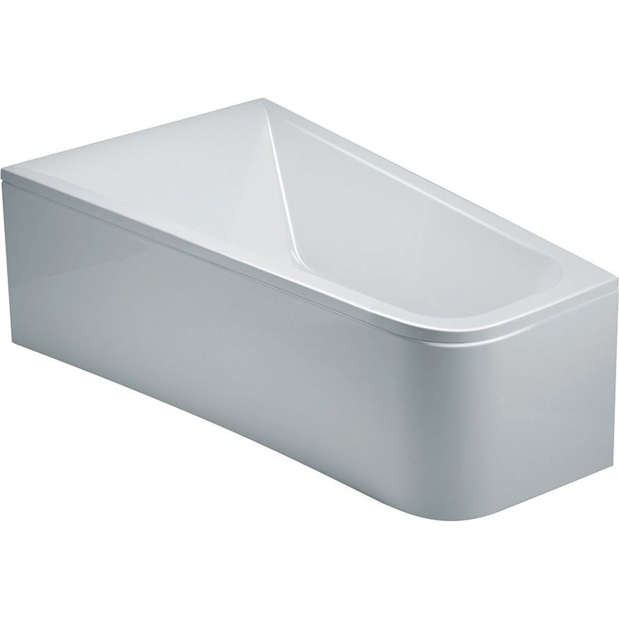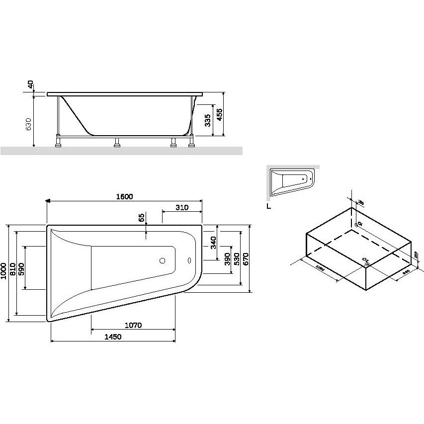 Эта элегантная ванна имеет габариты 160x100 см и вмещает до 185 литров воды, предоставляя достаточно пространства для расслабляющих процедур. Модель выполнена угловой и асимметричной для максимального использования пространства в ванной комнате. В комплекте с ванной идет прочный металлический каркас с регулируемыми ножками, который обеспечивает устойчивость и долговечность конструкции. Ванна рассчитана на универсальную установку шторки размера 80x140 см с распашной системой дверей, которая позволяет экономить пространство и удобна в использовании.
