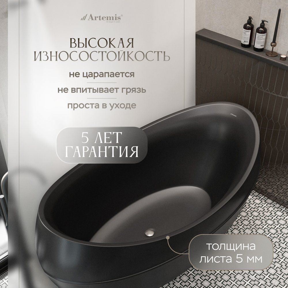 Погрузитесь в мир элитного комфорта с акриловой ванной Artemis Adonis. Эта отдельностоящая овальная ванна в стильном матовом черном цвете привнесет в вашу ванную комнату неповторимую атмосферу шика и уюта. Созданная с изящной простотой, она станет центральным элементом вашего интерьера, сочетающим в себе эстетическую привлекательность и модернистский подход.