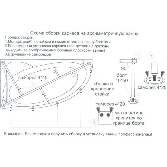 Габариты ванны составляют 150x90 см, что делает её отличным выбором для компактных ванных комнат. Объем ванны — 220 литров, а для удобства пользователей предусмотрен каркас. Диаметр слива составляет 5.2 см, однако слив-перелив и экран придется приобрести отдельно.