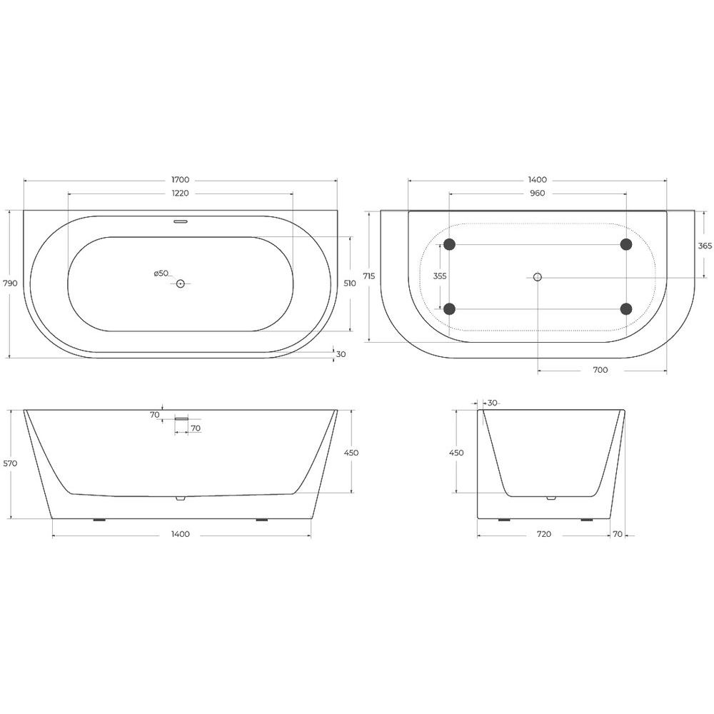 Эта акриловая ванна имеет размеры 170x79 см и объем 296 литров, что делает её достаточно вместительной для комфортного использования. Центральное расположение отверстия перелива обеспечивает оптимальный расход воды. Слив-перелив поставляется в комплекте, а диаметр сливного отверстия составляет 5.5 см. Благодаря высококачественному акрилу, ванна сохраняет тепло дольше, чем обычные ванны.
