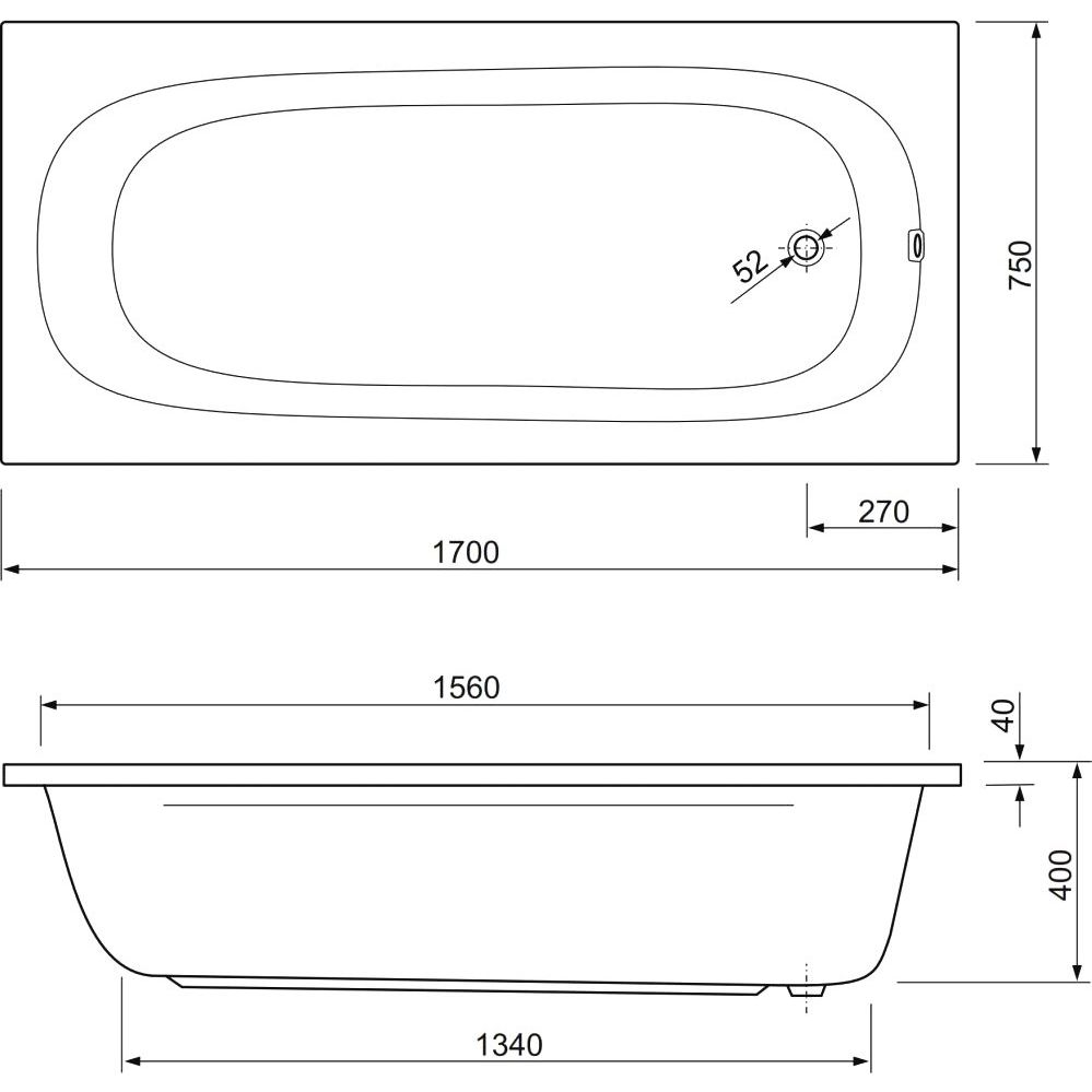 - Оптимальные размеры: ванна идеально подойдет для установки в стандартных ванных комнатах благодаря размерам 170x75 см.