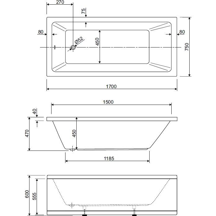 Эта акриловая ванна имеет удобные размеры 170x75 см, что делает её идеальным выбором как для компактных, так и для просторных ванных комнат. С объёмом 230 литров она предоставляет достаточно места для комфортного отдыха. Обратите внимание, что слив-перелив приобретается отдельно, а диаметр слива составляет 5.2 см. В комплект входит прочный металлический каркас Cezares EMP-170-75-MF-R с надёжными ножками, также произведённый в Италии.
