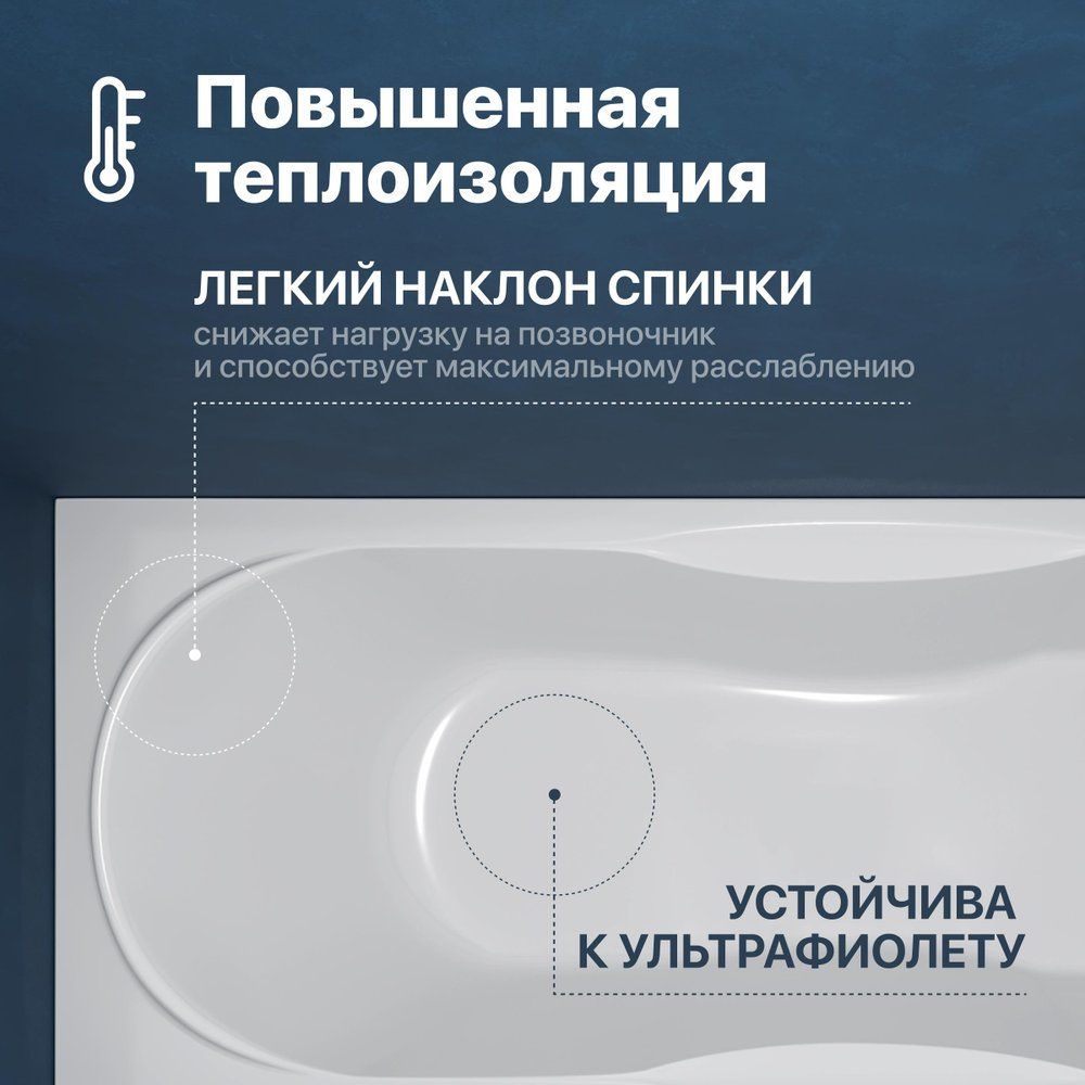 - Укрепляющий слой ванны обеспечивает устойчивость к ударам, а также защищает от ультрафиолетового излучения.
