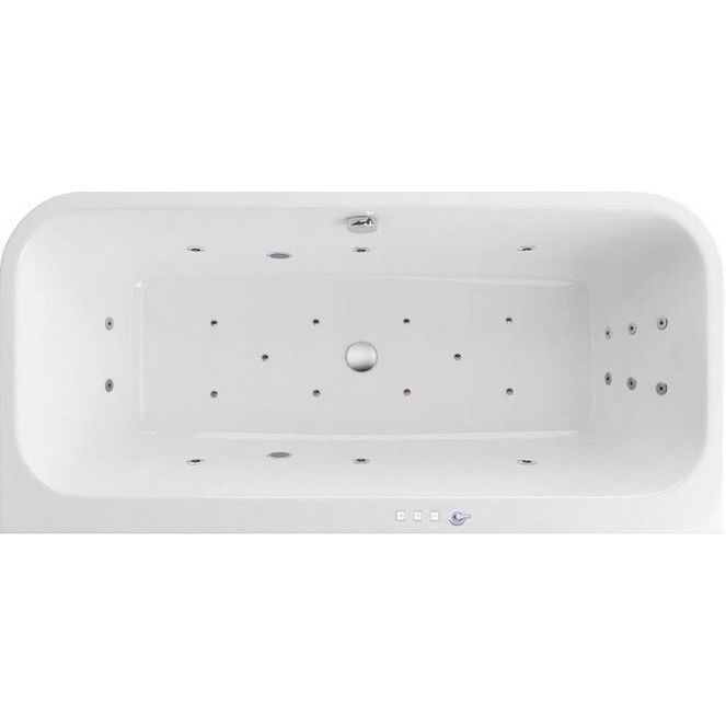 Ванна Excellent Arana WAEX.ARA18.ULTRA, размером 180x85 см, объемом 260 литров, оборудована 6 форсунками MIDI-JET с пульсирующим режимом и 10-12 форсунками AERO-JET, регулирующими интенсивность массажа. Система спинного массажа и массаж ступней реализованы через отдельные форсунки MICRO-JET, что дополнено функцией кран-баланса для точной регулировки. Вся система управления осуществляется через электронную панель, защищённую от сухого пуска, и дополнена хромотерапией с 7 режимами работы.