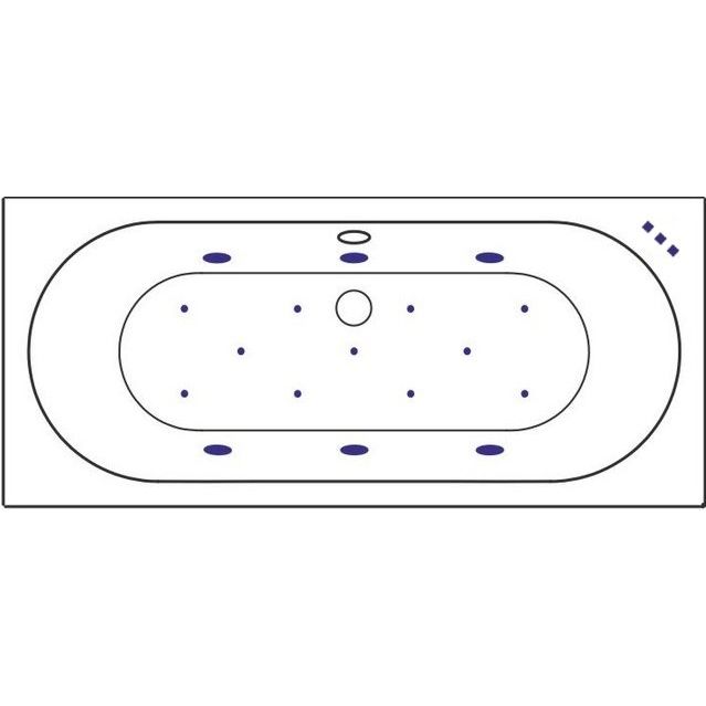 Ванна акриловая размерами 179,5x79,5 см, объемом 220 литров, идеальна для встраивания. Оснащена боковым гидромассажем, аэромассажем и хромотерапией для оздоровления цветом. Отверстие перелива расположено по центру, диаметр слива составляет 5.2 см. В комплект входит каркас и комплект креплений, гарантия на изделие составляет 3 года. Подголовник и экран приобретаются отдельно.
