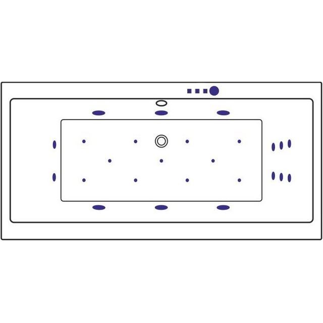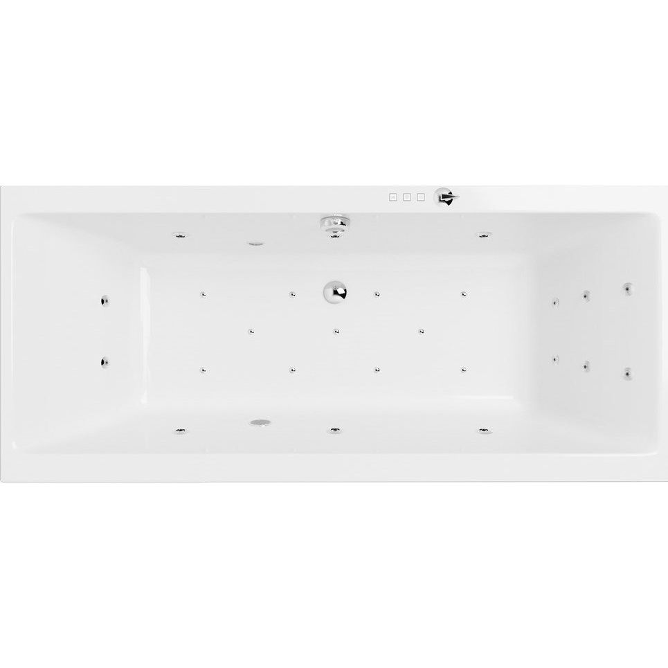 Эта акриловая ванна обладает стандартными размерами 180x80,5 см и вместимостью 250 литров. Встроенная система гидромассажа включает в себя 6 MIDI-JET форсунок, а аэромассажная система насчитывает 10-12 форсунок AERO-JET с регулируемой интенсивностью. Гидромассаж спины и ступней осуществляется через специальные форсунки MICRO-JET. Управление функциями осуществляется электронно, с помощью сенсоров уровня воды, что предотвращает сухой пуск. Ванна оснащена каркасом и комплектом креплений, слив-перелив размещен по центру и имеет диаметр 5,2 см. Подголовник приобретается отдельно. Изделие покрывается 3-летней гарантией от производителя.