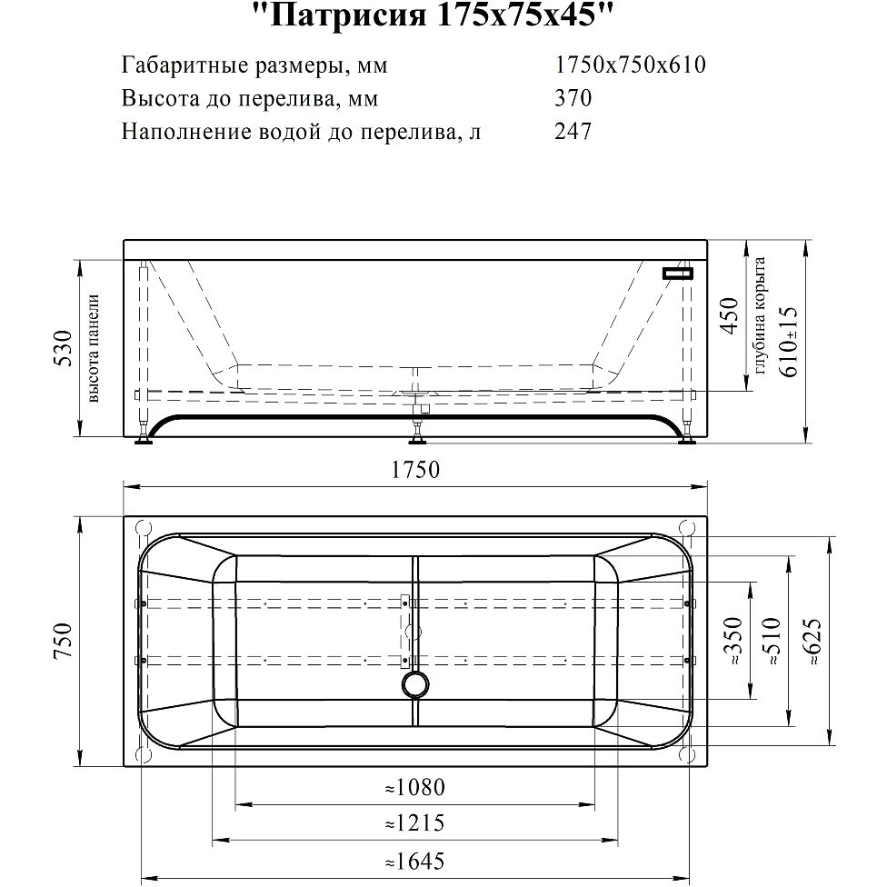 Ванна Radomir Патрисия с размерами 175x75 см и объемом 247 литров — идеальна для комфортного расслабления. Отверстие перелива находится по центру, а диаметр слива составляет 5 см. Безмеловое армирование чаши гарантирует её экологичность и долгий срок службы. Продукт оснащен крепким металлическим каркасом, что делает установку простой и надёжной. На ванну предоставляется 10-летняя гарантия, подтверждающая её качество и надёжность.