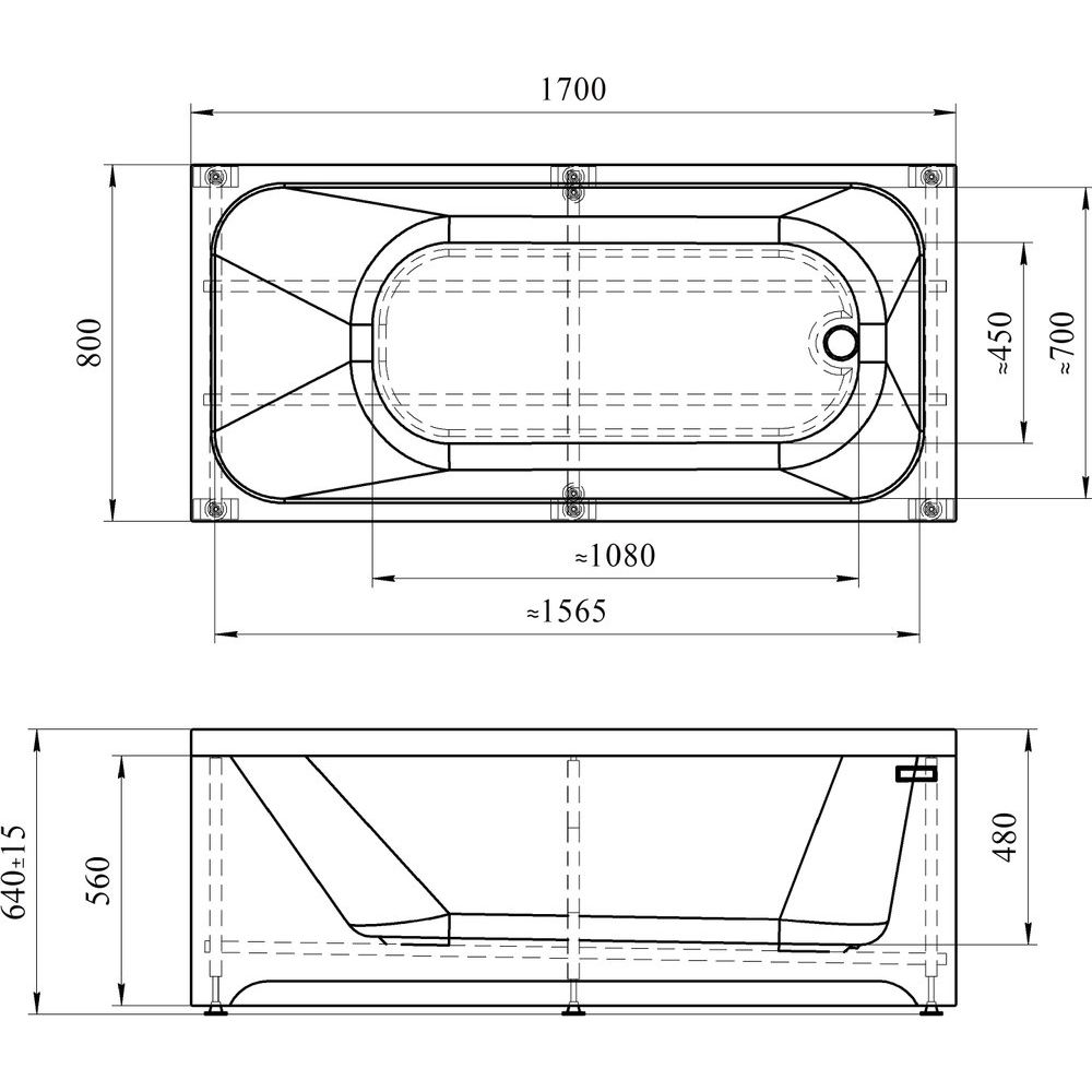 Ванна имеет габариты 170x80 см и объем 300 литров, что позволяет комфортно расположиться в ней даже самым взыскательным пользователям. Основа конструкции — прочный каркас, обеспечивающий стабильность и надежность использования. Диаметр слива составляет 5 см, что соответствует стандартам удобства и практичности. Учитывая эстетические и функциональные аспекты, ванна станет выгодным приобретением для любой ванной комнаты.