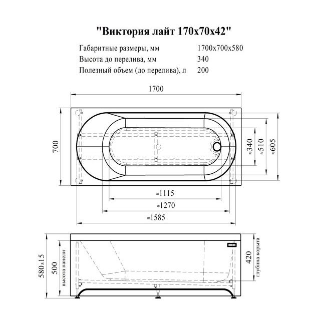 Ванна имеет размеры 170x70 см и объем 200 литров, что делает ее удобной для комфортного принятия ванн. Изготовлена из высококачественного акрила с внешним армирующим слоем, что обеспечивает еще большую прочность и долговечность. Оснащена каркасом, что упрощает процесс установки. Диаметр слива составляет 5 см, однако, слив-перелив приобретается отдельно. На изделие распространяется гарантия сроком на 10 лет, что подчеркивает уверенность производителя в своем продукте. Производство осуществляется в России, что гарантирует соответствие отечественным стандартам качества.