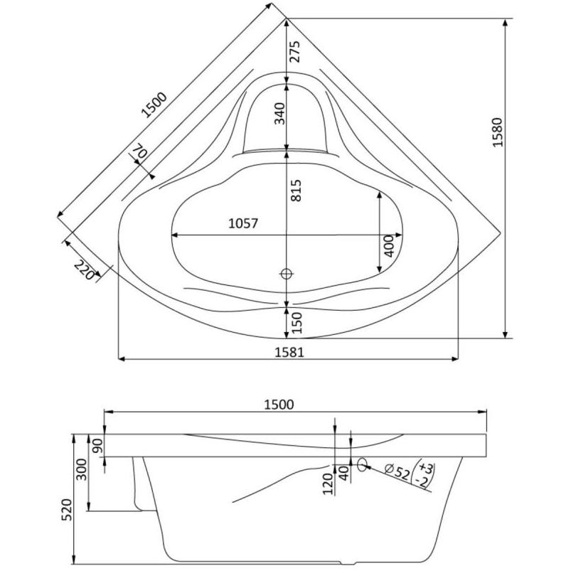 Протестированная нагрузка на дно ванн — 300 кг. Протестированная нагрузка на борт ванн — 150 кг. При таких нагрузках изделие не деформируется и не прогибается.
