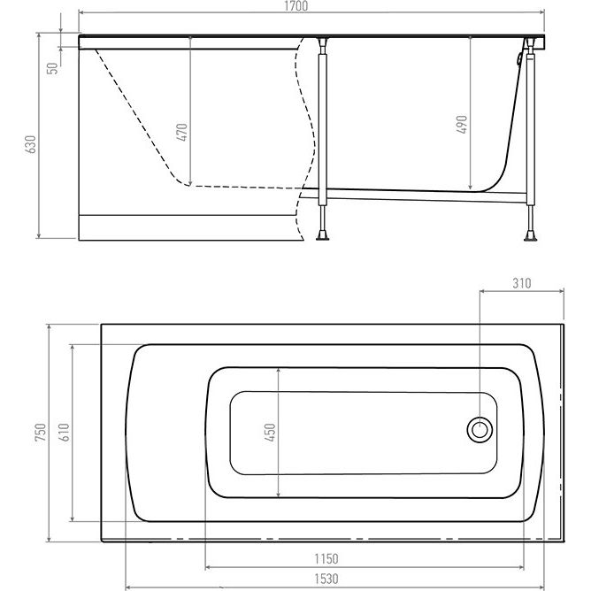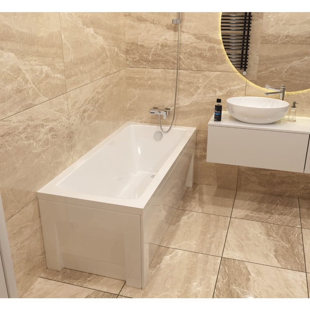 Акриловая ванна Timo Ritta имеет габариты 170x75 см, что делает её подходящей для среднего размера ванных комнат. Она вмещает 275 литров воды, обеспечивая комфортную глубину для релаксации. Ванна изготовлена в Финляндии, что подтверждает её высокие стандарты качества. Каркас для ванны Timo KT17 выполнен из стали и укомплектован креплениями и ножками, что обеспечивает стабильность и надежность конструкции. Диаметр слива составляет 5 см, а слив-перелив приобретается отдельно. Обратите внимание, что экран в комплект не входит и его необходимо приобретать отдельно.