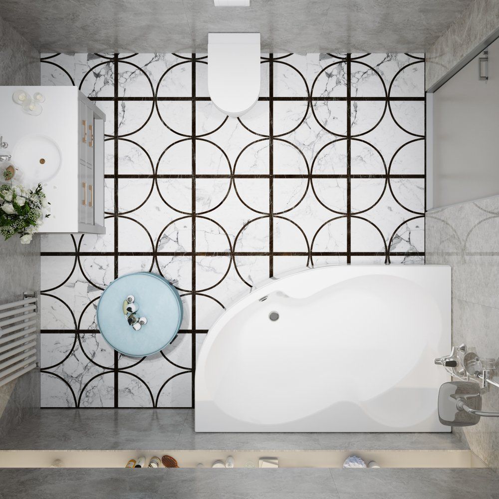 - Эргономичный дизайн: асимметричная угловая конструкция оптимизирует место в ванной комнате.