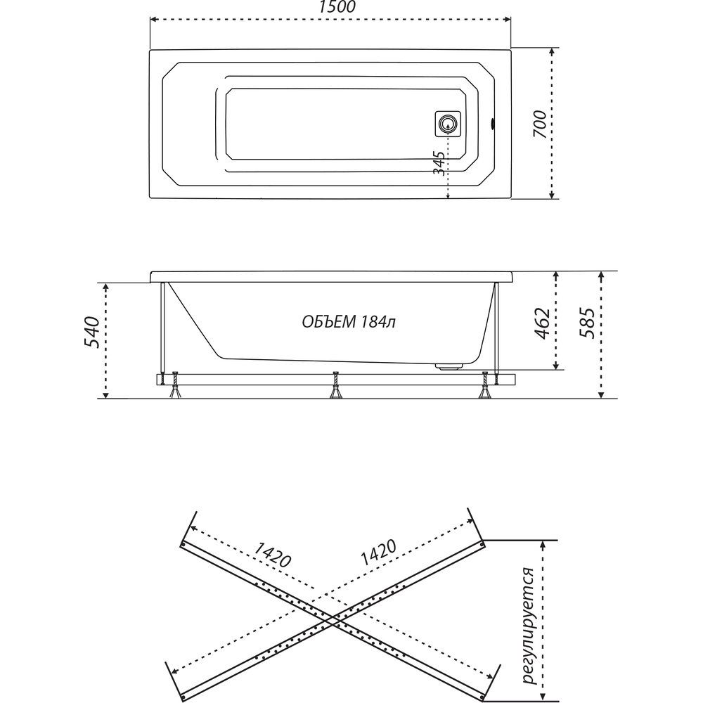Основным элементом комплекта является акриловая ванна Triton Прага без опоры с размерами 150x70 см и объемом 184 литра, что позволяет удобно разместиться пользователю. В комплекте идет накладка на слив диаметром 5.2 см. Гарантия на каркас и ванну составляет 10 лет. Ванна производится в России, что подтверждает высокие стандарты качества.