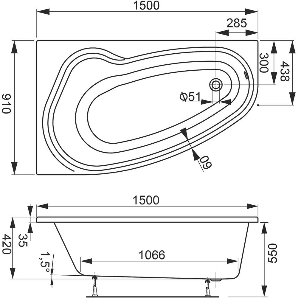 Акриловая ванна Vagnerplast Avona L 150x90 см — идеальное решение для современной ванной комнаты. Благодаря асимметричному угловому дизайну, ванна не только экономит пространство, но и добавляет стильный акцент интерьерам. Удобство использования и превосходное качество материалов делают эту модель идеальной для ежедневного комфорта и релаксации.