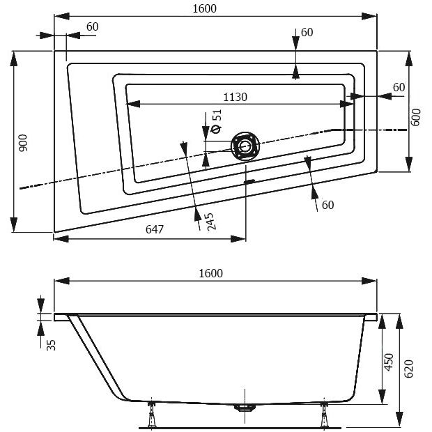 Эта модель ванны имеет размеры 160x90 см, что позволяет оптимально использовать пространство вашей ванной комнаты. Конструкция включает центральное размещение отверстия перелива, а диаметр слива составляет 5,1 см. Обратите внимание, что слив-перелив приобретается отдельно. В комплектацию каркаса входят металлические ножки и крепления, что обеспечивает надежное крепление и устойчивость. Ванна и каркас произведены в Чехии, что подтверждает их отличное качество и долговечность.