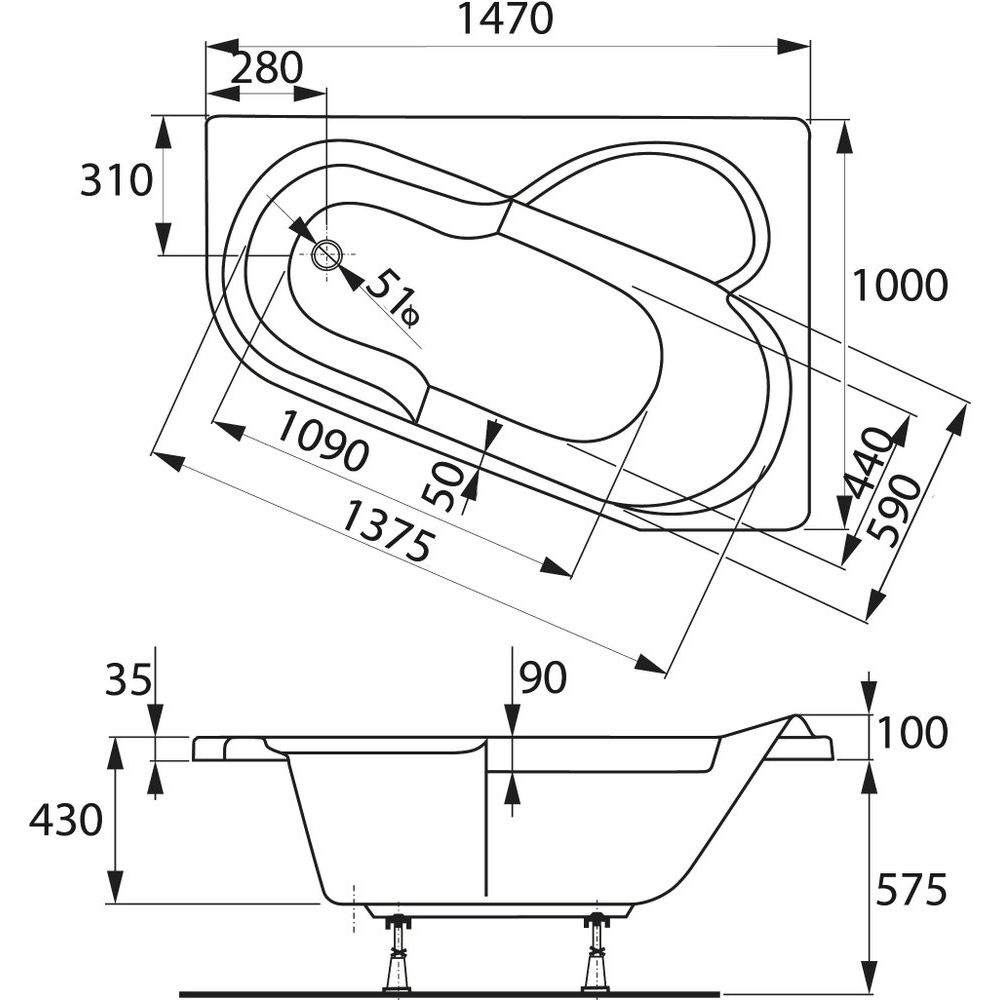 - Средний диаметр сливного отверстия составляет 5.1 см. Элементы подголовника и слив-перелив приобретаются отдельно.