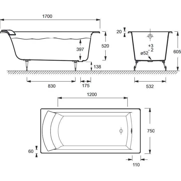 Эта встраиваемая чугунная ванна размером 170x75 см и объемом 156 литров идеально подходит для полной релаксации. Стандартное расположение слива-перелива и диаметр слива 5,2 см обеспечивают удобство установки. Подголовник и слив-перелив приобретаются отдельно, чтобы вы могли адаптировать ванную под свои предпочтения. Ванна произведена совместно в Китае и Франции, а гарантия составляет 25 лет.