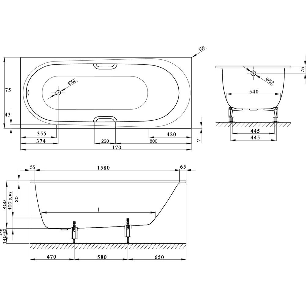 Ванна Bette BetteComodo имеет размеры 170x75 см и рассчитана на объем 155 литров, что идеально подходит для полного погружения. Она оснащена стандартным расположением слива-перелива. Однако слив-перелив приобретается отдельно, его диаметр составляет 5.2 см. Конструкция встраиваемая, что обеспечит эстетичное завершение ванной комнаты. Стальная поверхность устойчивого качества дополнена шумоизоляцией и инновационным самоочищающимся покрытием. В комплекте идут металлические ножки Bette B23-1500, на которые действует гарантия 2 года. Произведено в Германии, это изделие служит гарантом надежности и долговечности.